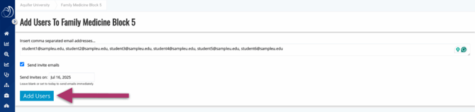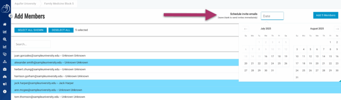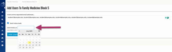4. Select a date to schedule an email to your users inviting them to access the course. If no date is selected, the email will be sent immediately.