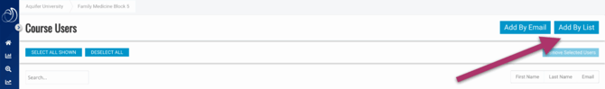 Add by List allows you to select users to add to your course by selecting them from the list of current users in the system. This option is recommended if you are adding individuals or small groups of students to a course.