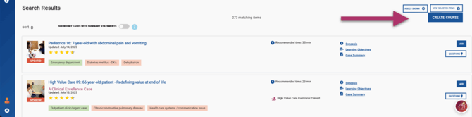 Align Courses to Your Curriculum: Pick and choose content to create courses that fit your curriculum. You can create courses that align to longitudinal integrated clerkships, bootcamps, electives, or specific student's remediation needs. You can integrate cases from across your subscription to enrich an existing course. If you have access to Integrated Illness Scripts, you can create a course with select scripts for students to compare and contrast using one of our ready-made Integrated Learning Sessions, or combine them with our cases to enable a richer learning experience.