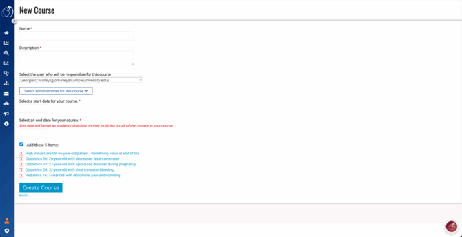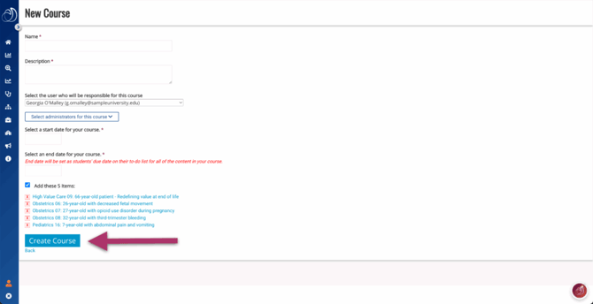• Course Name: We suggest using a consistent naming convention that includes course and rotation name, such as Family Medicine Clerkship: Block 5.