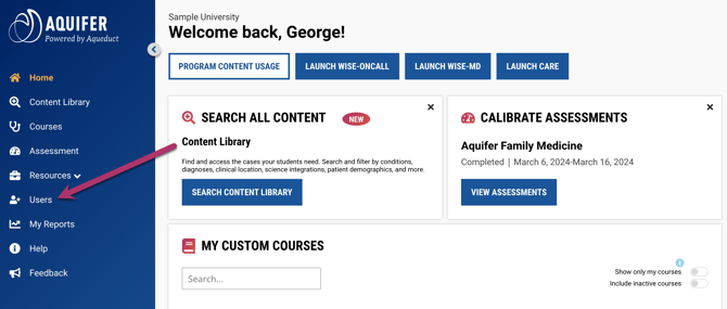 Once you've signed in, click on Users in the side navigation.
