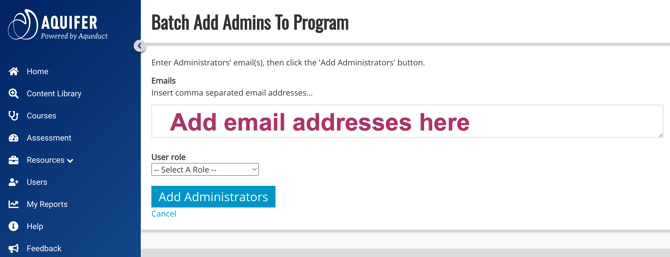 Administrators and educators need to be added to Aqueduct before they will be able to access it, and they need to be assigned an appropriate role in the system.